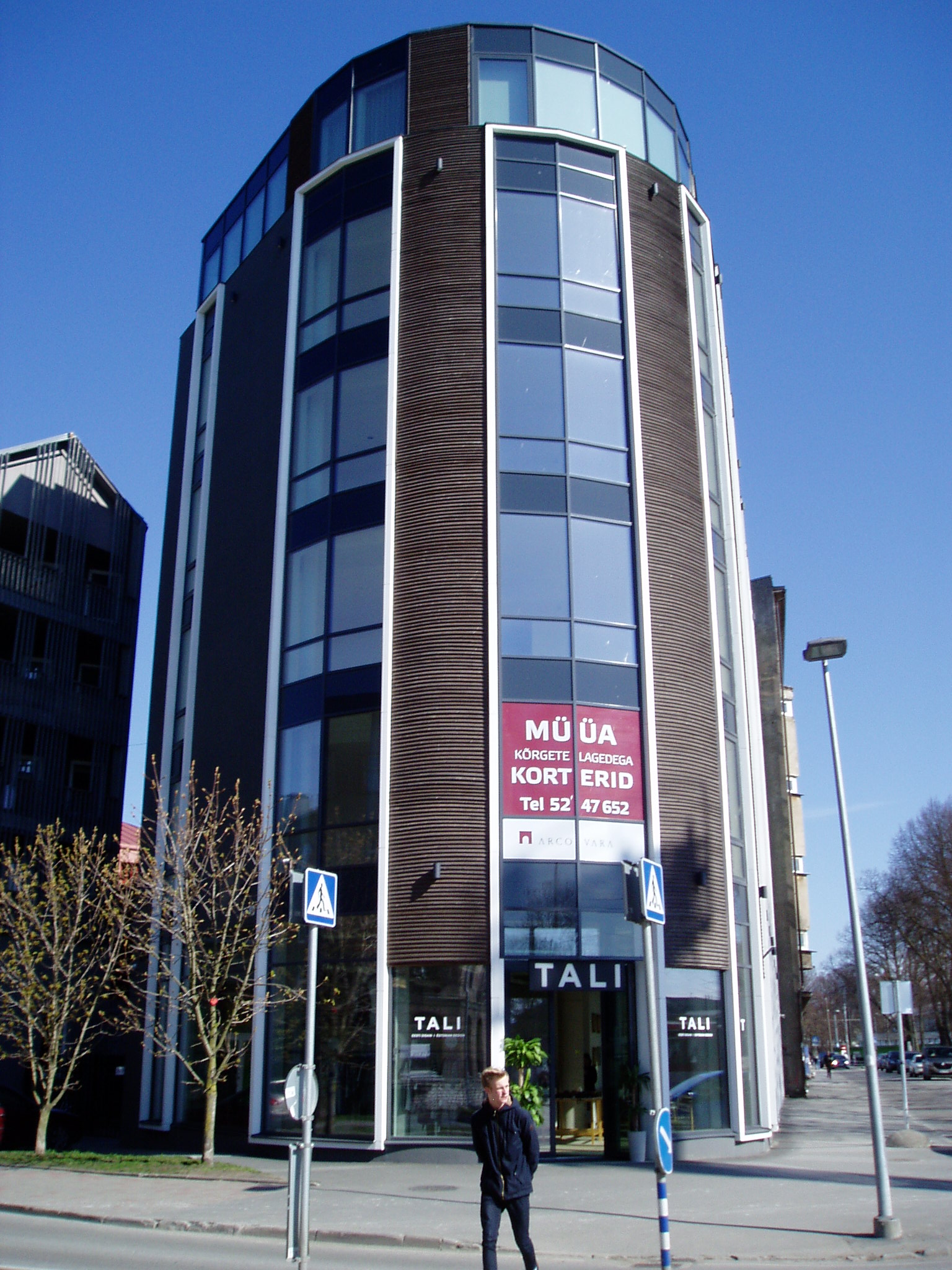 8. Вот этот дом. У него несколько особенностей - практически нет двора, необычные для новостроек высокие потолки и совершенно фартовая 130м квартира на верхнем этаже, из большого холла которой можно одновременно лицезреть и море и замок Тоомпеа. Кстати продана в районе 300 000 евро, если не ошибаюсь. Кроме того, на крыше у этой квартиры огроменная терасса под 140 квадратов. с которой тоже видно и море и Тоомпеа. На первом этаже магазин эстонского дезигна Tali (цены улётные)